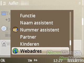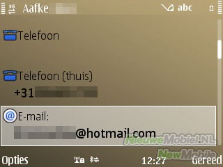 Het aantal contacten dat kan worden opgeslagen is haast oneindig want het hele interne geheugen van 250MB staat tot je beschikking. Voor een nieuw contact kan een enorme hoeveelheid gegevens opgeslagen worden. Standaard zijn dit voor- en achternaam, mobiel, vaste telefoon, e-mail, video-oproep, internettelefoon, push to talk, bedrijf, functie en synchronisatie. Daarnaast kan via opties nog een meervoud aan telefoonnummers, e-mails, adres- en werkgegevens worden toegevoegd.