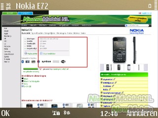 De browser waar de E72 mee is uitgerust is een goede browser maar wel wat omslachtig in het gebruik. Sites worden over het algemeen goed weergegeven al duurt het laden soms wat lang. De cursor over de site bewegen gaat schokkerig met de navigatietoets, ook als je de optische functie aan hebt staan. Helaas is het niet mogelijk om meerdere vensters te openen maar het geschiedenisoverzicht is wel duidelijk.