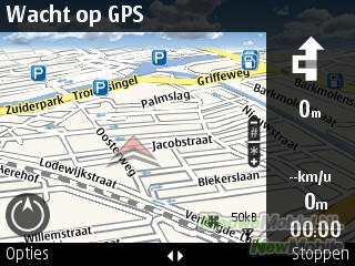 De E72 is uitgerust met GPS en halverwege de testperiode kregen wij een SMS dat we gratis de volledige versie van Ovi Maps konden downloaden. Begin dit jaar maakte Nokia bekend dat ze haar telefoons van gratis volledige navigatiesoftware zou gaan voorzien en nu was het voor ons zover. Het programma biedt gesproken aanwijzingen voor auto en voetganger.