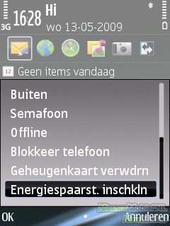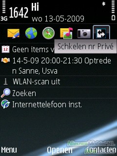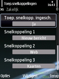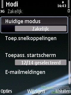 Door via het menu, of een van de snelkoppelingen te drukken switch je van modus, zakelijk of privé, en elk van de startschermen heeft weer zijn eigen setje snelkoppelingen. Op zich handig, maar niet bepaald indrukwekkend. Ook waar andere toestellen een speciaal menu hebben zodra het toetsenbord opgeschoven wordt zoals bij de HTC Touch Pro laat Nokia wederom een steekje vallen.