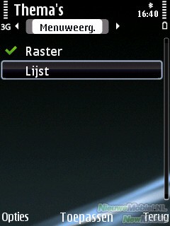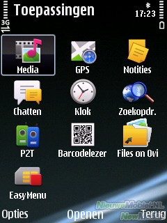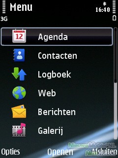 Zoals bij veel smartphones zijn er een aantal menu's maar we beginnen met het hoofdmenu. Het hoofdmenu is te openen met een hardwarematige toets zonder vaste menu functie. De knop is dus in het startscherm toebedeeld aan het hoofdmenu, maar dit kan eventueel ook anders ingesteld worden. Het menu zelf is een raster met kleurige pictogrammen zoals we dat kennen van het symbian S60 besturingssysteem. Als je wil kan het ook ingesteld worden als een ouderwetse lijst, ieder wat wils. De pictogrammen kunnen gekozen worden via de multidirectionale toets, maar ook de knoppen op het numerieke toetsenbord komen overeen met de pictogrammen voor nog snellere toegang. Tot op zekere hoogte is het een zeer helder en overzichtelijk menu. Zo staan de berichten bijvoorbeeld direct in het midden, en die zullen dan ook waarschijnlijk het vaakst geopend worden.