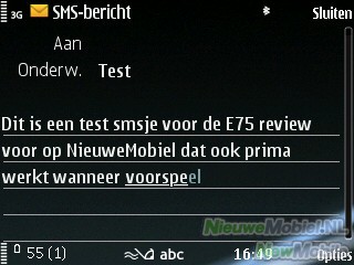 Gezien het volledige toetsenbord zou je hier misschien weer het standaard "het is geweldig" verhaal verwachten, maar we moet teleurstellen. Het toetsenbord is net niet lekker afgesteld. Zoals we al eerder opmerkten zijn de toetsen aan de grote kant, en er zit in het midden van het toetsenbord een chromen balkje. Dit heeft als gevolg dat het typen niet intuïtief gaat, en je vaak aan het zoeken bent met vingers en ogen naar de juiste knop. Ook na gewenning blijft het verre van ideaal. Waar we bijvoorbeeld met de BlackBerry Curve binnen een dag of drie blind aan het typen waren, is dit nog lang niet aan de orde bij de E75. Een tik op de vingers voor Nokia dus, dit moet beter!