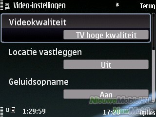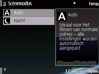 De E75 kan ook videobeelden maken door over te schakelen naar de videomodus. Hier kunnen ook weer een aantal zaken ingesteld worden waar er een aantal overeen komen met de instellingen van de camera. De scenemodus kan ingesteld worden op automatisch en nacht waarbij als het nodig is de flitser ook als videolicht dienst kan doen. De witbalans kent de volgende opties; automatisch, zonnig, bewolkt, gloeilamp en TL licht. Als laatste kunnen er nog effecten worden toegepast zoals sepia en negatief.