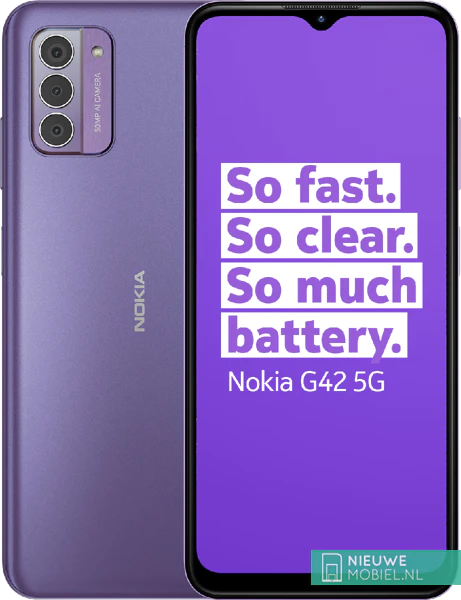 De Nokia G42 is een 5G-smartphone die zelf eenvoudig te repareren is. Dankzij het QuickFix-systeem vervang je een gebroken scherm, uitgeputte batterij of defecte USB-poort eenvoudig zelf. De G42 5G kent een batterijduur tot wel 3 dagen en mag rekenen op 2 jaar aan Android OS-updates en 3 jaar aan beveiligingsupdates.