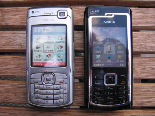 Hieronder vindt men een vergelijking tussen de Nokia N70 en de nieuwe Nokia N72. Op de foto's is duidelijk zichtbaar dat het toetsenbord van beide een totaal ander uiterlijk heeft en dat de klep van het geheugenkaart slot verbeterd is in de N72.