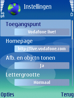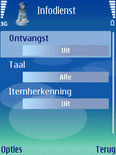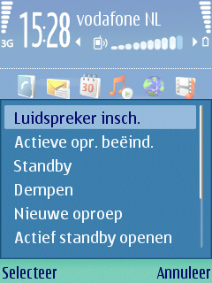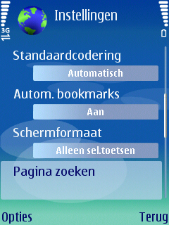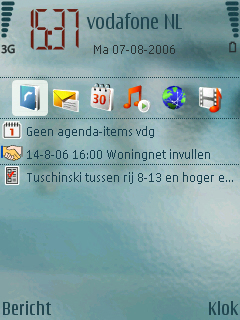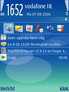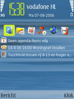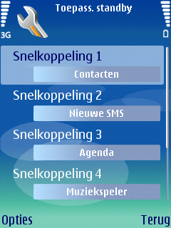 Wat de gebruiker verder op het beginscherm ziet is gelijk gebleven aan de menig Nokia model, namelijk de notities voor de provider, de tijd, de Bluetooth, batterij, berichten en het ontvangst van het belsignaal. Aan de onderzijde van het scherm zijn twee links zichtbaar die door beide soft-keys gebruikt kunnen worden. Het gaat hier standaard om twee standaard links, maar deze kunnen zelf naar eigen wens ingesteld worden via het instellingen menu. Naast deze instellingen kan men de centrale 5-richtings bedieningstoets in de vijf richtingen ook een functie meegeven. Dit werkt alleen wanneer het homescreen niet ingeschakeld is.