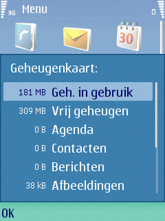 Naast het interne geheugen is er in het toestel ook extern geheugen aanwezig. Er wordt geen geheugenkaart in de doos meegeleverd. Gelukkig is er wel een MiniSD geheugenkaartslot aanwezig in het toestel. Dat maakt het mogelijk om uit te breiden naar grootten van meer dan 1 GB. 2 GB geheugenkaarten werkte zonder problemen in de N73.