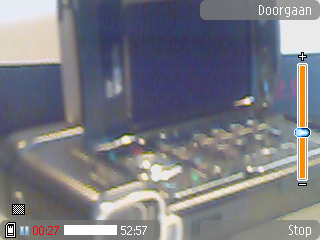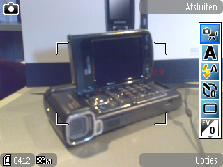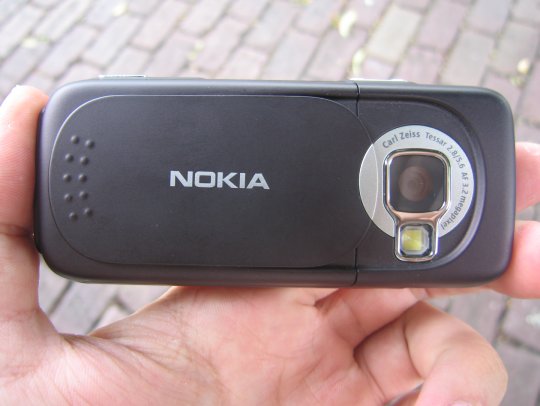 De achterkant van het toestel bevat de camera en de schuif. Vooral die schuif is een enorme vooruitgang. Deze gaat niet zo maar open zoals bij de N70 of 6680. De camera is hierdoor altijd goed beschermd en zo maar foto’s maken is er niet meer bij.