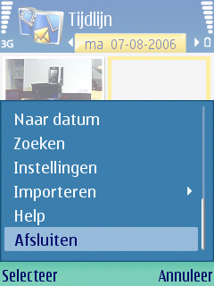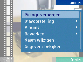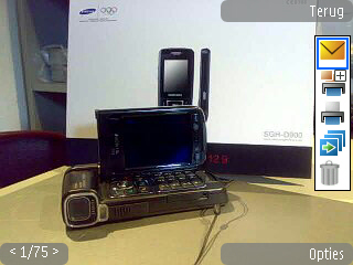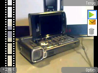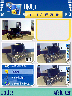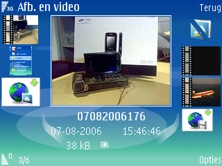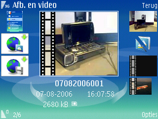 Wanneer de afbeeldingen gemaakt zijn door de camera kunnen ze opgevraagd worden via de Galerij icoon in het menu. Hier wordt geen scheiding meer gemaakt tussen de data op de geheugenkaart en de data op de telefoon zelf zoals dat bekend is uit vorige Series 60 modellen. Onder de map afbeelding vindt men de gemaakte afbeeldingen in een bekende weergave; een soort rondo. Dit is de enige weergave die mogelijk is. Het laden van de foto duurt redelijk lang wanneer een grote hoeveelheid foto’s geladen dient te worden. De K800i heeft daar bijvoorbeeld totaal geen problemen mee. Maar gelukkig is het scrollen door de rondo niet meer traag, dat gaf nog al wat problemen bij vorige modellen.