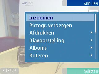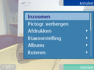 Wanneer een foto geopend wordt kan men de foto fullscreen weergeven, roteren, verwijderen, van naam wijzigen en er op inzoomen. De aanpasmogelijkheden voor de netgemaakte foto’s zijn duidelijk aanwezig en netjes voorzien.
