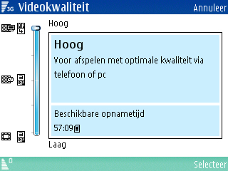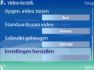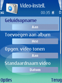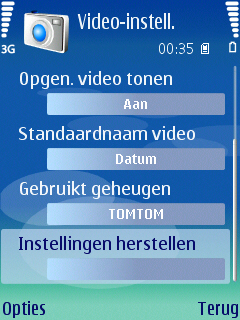 De video’s worden opgeslagen in het formaat MP4 en 3GP (voor de kleinere formaten). De aanwezige resoluties in het toestel zijn 352 x 288 pixels, 176 x 144 pixels en 128 x 96 pixels. De mogelijke opties zijn helaas niet op hetzelfde niveau als de camera. Er is alleen de keuze uit een normale en een nachtmodus die niet heel erg goed is. Daar had meer ingezeten. Tevens zijn er vijf schillende soorten witbalans (Automatisch, Zonnig, Bewolkt, Gloeilamplicht en TL-licht) en vier verschillende soorten kleurtoon (Normaal, Sepia, Zwart & Wit, Negatief en Levendig), kan het geluid worden uitgeschakeld, is er mogelijkheid tot wijziging van de standaardnaam en de wijziging tussen de geheugenkaart en het interne geheugen als opslagmedium.