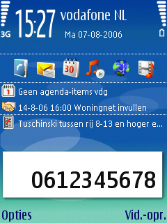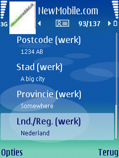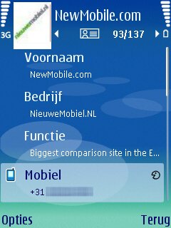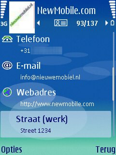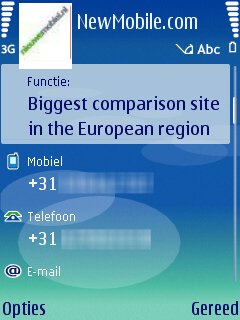 Per contactpersoon kan men standaard een redelijk aantal punten met data toevoegen: Voornaam, Achternaam, Bedrijf, Functie, Telefoonnummer, Mobielnummer, Faxnummer, Emailadres. Mocht men dan meer data willen toevoegen dan kan dit via “gegeven toevoegen” en kan men diverse extra’s gegevens toevoegen zoals: Telefoonnummers, Mobiele nummers, Fax nummers, Adressen, Emailadressen, URL’s, de verjaardag van een contactpersoon en een notitie. Het is nog niet zo uitgebreid als de Windows Mobile toestel, maar voor een smartphone is het niet anders dan zeer netjes. Deze optie is exact hetzelfde gebleven met andere Series 60 toestellen.