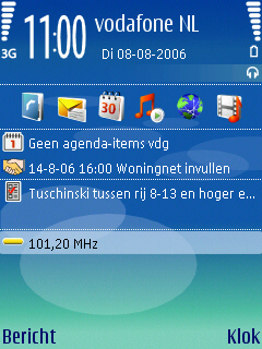 Het homescreen op het bureaublad van het toestel heeft een aantal kleine aanpassingen, die men kan doorvoeren. Men kan de vijf snelkoppelingen instellen en het homescreen aan en uit zetten. Allemaal wat karig, maar gelukkig is het nu standaard mogelijk de radio en MP3 speler te bedienen vanaf het homescreen wanneer één van beide ingeschakeld is.