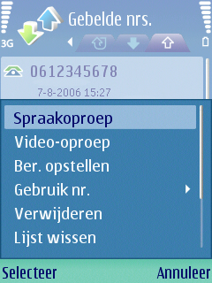 Het gespreksoverzicht is op te vragen via de opneemknop en bevat vier tabbladen, die qua duidelijkheid niks te wensen over laten. De gegevens zijn simpel op te vragen via de tabbladen en men kan alles vinden wat gerelateerd is aan de gemaakte gesprekken. In het menu onder de icoon logboek vindt men nog meer informatie. Hier worden ook nog andere punten weergeven zoals de duur van de diverse oproepen, de kosten van deze oproepen (alleen mogelijk wanneer de kosten voor 1 minuut zijn ingesteld) en de GPRS gegevenssteller. Alles is simpel en doeltreffend op één punt te vinden en zo hoort het. Het instellen van de timers/tellers is vrij simpel te doen in het logboek menu. Men kan aangeven hoe lang de tellers bijgehouden moeten worden, hoeveel een gesprek mag kosten en welke eenheden gebruikt moeten worden. De tellers op nul zetten is zo gepiept via het menu van het logboek. De manier waarop dit alles werkt is gelijk aan andere Series 60 toestellen.