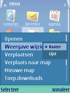 Wanneer men het menu zelf wil opstarten moet men op de menuknop drukken. In het menu vindt men een groot aantal iconen in roosterweergave waarachter een groot aantal programma’s zitten. De manier waarop deze iconen zijn ingedeeld is een stuk verbeterd en diverse programma’s zijn opgedeeld in redelijk aantal mappen. Het is mogelijk om de volgorde en mappen waarin diverse programma’s staan aan te passen. De gebruiker kan zelfs de plek wijzigen waar een map staat. Naast het wijzigen van deze mappenvolgorde en de indeling daarvan is het mogelijk een andere soort van weergave van alle mappen te kiezen, genaamd de lijstweergave. Ook bij de lijstweergave is verplaatsing mogelijk.
