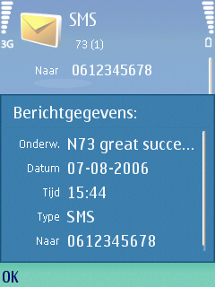 Alle mogelijkheden op het gebied van messaging zijn aan boord van dit toestel. MMS, SMS, picture messaging, email via POP3, SMTP en IMAP4 servers zijn aanwezig. Men kan de diverse berichten opvragen via het berichten icoon in het menu en daar vind men een aantal mappen in een lijstweergave. Men kan snel een bericht invoeren of de inbox bekijken waarin alle soorten berichten op de email berichten na samen zichtbaar zijn. Nadeel is daarvan is dat men dan alle berichten door elkaar heeft staan. Een goede manier was geweest berichtregels te introduceren waardoor de diverse berichten in bepaalde zelf te definiëren mappen terecht zouden komen. Helaas is deze functie nog niet opgenomen in de Series 60 interface.