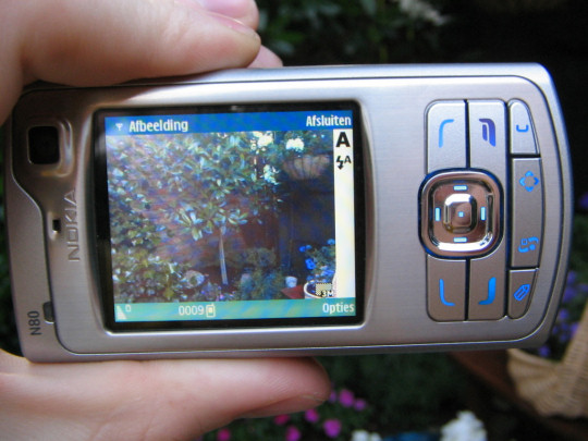 Wat ook nieuw is de aanwezige camera in de N80, die foto’s maakt van maarliefst 3.0 megapixel. De N80 is het eerste model van Nokia met een dergelijke camera. Dit betekent een enorme resolutie van 2048 x 1536 pixels, een verbetering ten opzichte van de N70 en alle andere modellen met een 2.0 megapixel camerasensor van Nokia, goed voor 1600 x 1200 pixels. Met de komst van de eerste 3.0 megapixel cameramodule begeeft Nokia zich in het domein van de Sharp V903, Sony Ericsson K800 en Samsung D900. Of begeeft men zich op glad ijs? Beide. Hoewel er geen Zeiss lens is gebruikt, is de camerakwaliteit van de N80 is zeker niet slecht en levert veel meer detail op als bij de N70 het geval is. Ook hebben de foto’s een natuurlijkere kleurtint.