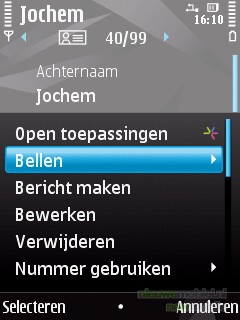 Symbian toestellen stellen met het telefoonboek nooit teleur. Er is eigenlijk geen enkele beperking, het hele geheugen van de telefoon (inclusief de MicroSD geheugenkaart) kan worden gebruikt voor het opslaan van contacten. Bovendien zijn er dan nog de talloze eigenschappen die de gebruiker aan contacten kan toevoegen. Zo kunnen contacten gesorteerd worden op voor- of achternaam en ieder contact kan een persoonlijke ringtone of video krijgen. De gebruiker kan iedere eigenschap die er te bedenken is aan een contact toevoegen, want er zijn vooraf bepaalde eigenschappen maar het is ook mogelijk om zelf nieuwe eigenschappen te bedenken en toe te voegen. Kortom, ook de N85 stelt niet teleur.