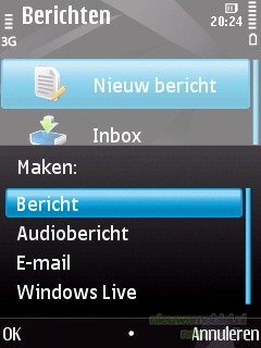 De e-mail cliënt is dezelfde als die van bijvoorbeeld de Nokia E71 en andere Nokia’s, dus heel gebruiksvriendelijk en geweldig makkelijk in te stellen. Voor een uitgebreidere toelichting verwijzen we naar de review van de E71. Het Symbian besturingssysteem heeft ondersteuning voor veel verschillende Instant Messaging, maar dit is niet standaard aan boord. Om bijvoorbeeld Windows Live Messenger te gebruiken moet dit eerst gedownload worden.