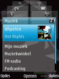 De N85 draait onder Symbian 9.3 S60 3rd Edition Feature Pack 2, de layout van het menu is een klein beetje anders dan de vorige versie en bovendien werkt het iets sneller. De twee functietoetsen kunnen ingesteld worden naar elke toepassing, net als de 6 snelkoppelingen in het beginscherm. De menu knop zit links onder de functietoets en het menu heeft met het nieuwe Feature Pack een kleine make-over gehad. De icoontjes zijn kleurrijker en zien er een strakker uit. Ook bij de makers van Symbian is het doorgedrongen dat de lay-out en design van het menu steeds belangrijker wordt, maar veel interactie met de gebruiker door animaties is er niet. Verder zit het menu in elkaar zoals we gewend zijn, navigatie met de navigatietoets door het menu gaat soepel en de gebruikelijke mapjes variërend van Instrumenten tot Kaarten zijn aanwezig. Ook zorgt inhouden van de menuknop er weer voor dat de taakmanager wordt geopend.