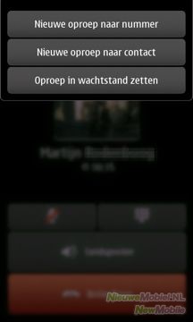 Tijdens het bellen heb je de volgende opties: activeren van de luidspreker, microfoon muten, toetsenblok tevoorschijn halen en ophangen. Maar eigenlijk heb je alle opties van de telefoon ter beschikking, want het hele menu is bereikbaar.