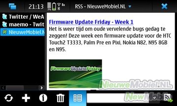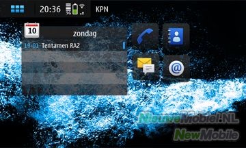 In totaal zijn er vier bureaubladen, die je geheel naar eigen inzicht kunt aanpassen. Zo kun je er snelkoppelingen naar applicaties, contactpersonen of favoriete webpagina’s op zetten. En natuurlijk kunnen er ook widgets op het bureaublad geplaatst worden. Standaard zijn er widgets voor Google, de Mediaspeler, Ovi Store (die tijdens het testen van het toestel overigens nog niet voor de N900 werkt), Locatie en RSS feeds. De verwachting is dat er door de developers wel meer widgets komen, want Maemo 5 heeft een grote community.
