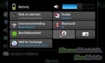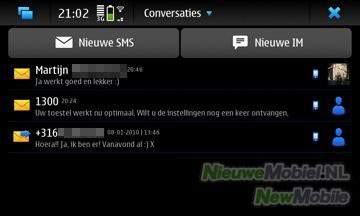 Ook de manier waarop de N900 de notificaties voor een nieuwe sms of email regelt is fijn en discreet. Je wordt niet abrupt gestoord, terwijl je bijvoorbeeld op het wereldwijde web aan het surfen bent. Maar een melding komt linksboven uit de statusbalk naar beneden, met een aantal regels van de sms of mail en gaat naar een paar seconden weer weg. Hierdoor kun je rustig door blijven gaan met waar je mee bezig was. Je hoeft overigens niet bang te zijn dat je de SMS vergeet te antwoorden. Want doordat de knop waarmee je het menu inkomt, linksboven in het scherm, blijft gloeien totdat je de SMS bij conversaties hebt gelezen en/of beantwoord, zal je hieraan altijd worden blijven herinnerd.