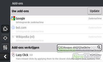 Uit de instellingen blijkt dat de browser ook add-ons gaat ondersteunen. Op dit moment zijn er nog niet heel veel beschikbaar, maar eentje die we jullie niet willen onthouden is een add-on die je klik corrigeert. Als je bijvoorbeeld een URL niet goed aanklikt, zorgt deze add-on ervoor dat de URL toch opent. Eigenlijk zou zo’n add on niet nodig moeten zijn, maar bij een onnauwkeurig scherm kan het toch een uitkomst bieden.