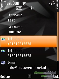 Hier komt het zakelijke aspect tevoorschijn. Bij het aanmaken van een nieuw contact wordt er eerst een interessante optie gegeven, er kan gekozen worden voor een nieuw contact aanmaken, maar ook voor het updaten van een bestaande. Deze mogelijkheid vereist meestal wat extra handelingen maar de snelkoppeling ernaar toe is erg welkom. Hierna kan je kiezen waar je dit nieuwe nummer aan wil toewijzen en dit is hetzelfde als bij het aanmaken van een nieuw contact. De keuze gaat tussen 21 opties variërend van mobiel nummer tot aan het nummer van de assistent of bijvoorbeeld een fax. Nadat hiervoor gekozen is kunnen er nog een aantal standaard details ingevuld worden zoals e-mail en extra nummers. Na het klikken op “add detail” komt er echter één van de meest uitgebreide lijsten die we ooit gezien hebben naar voren met 43 opties variërend van bijnaam tot aan de namen van de kinderen van de contactpersoon. Hoeveel contactpersonen er opgeslagen kunnen worden is niet helemaal duidelijk, maar met 16 GB moet dat aantal ergens in de duizenden lopen.