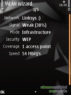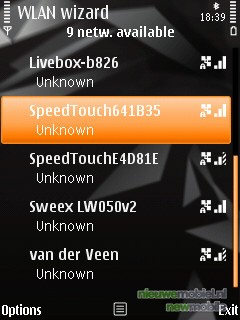 De telefoon beschikt ook over WiFi en kan dus verbinding maken met een draadloos router. Deze optie staat in het stand-by menu en het zoeken naar netwerken kan gemakkelijk aan en uitgeschakeld worden. Nadat het wachtwoord eenmaal is ingevoerd onthoud de telefoon het netwerk als bekend. Nadat de telefoon de opdracht krijgt verbinding te maken met het internet, bijvoorbeeld via de browser, zullen de bekende netwerken tussen de opties “search for WLAN” en “WAP services” verschijnen en is één druk op de knop weer voldoende om verbinding tot stand te brengen. Dit betekent dat de telefoon niet permanent verbonden is, wat uiteraard de batterijduur ten goede komt.