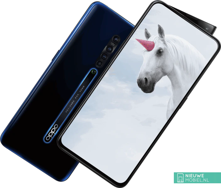 De Oppo Reno2 is alweer de 2e generatie Reno maar ditmaal uitgerust met in totaal 5 camera's; achterop 4 en binnenin 1. We zeggen 'binnenin' want de selfiecamera draait als een haaienvin omhoog.