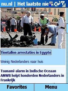 Voor het surfen op internet is Internet Explorer aanwezig, de bekende browser die door menigeen ook wordt gebruikt op de PC. Zoals al eerder bleek is het surfen op de SPV C550 een stuk comfortabeler geworden door de toegepaste resolutie van maarliefst 240 x 320 pixels. Pagina's komen zo duidelijker en vooral meer in beeld omdat er immers meer informatie op het scherm past. Toch blijf Internet Explorer voor de Smartphone worstelen met frames terwijl dit nergens nodig voor is. In tegenoverstelling tot de oude gebruikersresolutie van 176 x 220 (C500) is het bekijken van internetpagina's nu wél handig geworden, maar nog steeds kan Pocket Internet Explorer niet overweg met frames. Het is dan ook zeker de moeite waar om eens een alternatieve browser te gaan proberen zoals Mozilla, die zich al eerder bewezen heeft op de Smartphone en perfect met frames overweg kan.