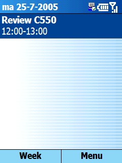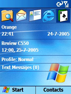 Windows Mobile 2003 SE ondersteund de QVGA resolutie volledig en heeft als extra dat er met de 0-toets voor ‘more' gekozen kan worden onder QVGA. Toch verschilt de versie van dit besturingssysteem op de C550 amper van de versie op de C500. Na enig uitproberen blijkt wel dat de C550 een klein beetje trager aanvoelt dan de C500, die werkelijk echt overal doorheen lijkt te vliegen. Kanttekening is wel dat alleen de wat gevorderde gebruikers dit zullen merken en dat het verschil in de menu's niet erg groot is. Een feit is dat de C550 een snel toestel blijft, ondanks dat de gebruikersinterface in 240 x 320 een stuk zwaarder is. In vergelijking met de C500 zien de schermlettertypen er in de nieuwe resolutie er beter uit, al ogen deze wel erg vet in het startmenu. Een smaller lettertype, of in ieder geval de mogelijkheid om dit aan te passen zou op de plaats zijn geweest. Men kan echter alleen maar nóg grotere fonts kiezen zodat de lettertypen wat josti-achtige vormen beginnen aan te nemen, maar kleiner is niet mogelijk.