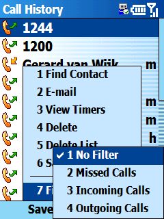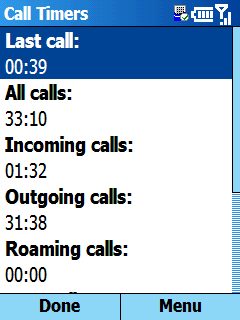 Standaard bij het Windows Mobile platform is er een heel uitgebreid gespreksoverzicht op te vragen van inkomende, uitgaande en gemiste oproepen. Per oproep kan er uiteraard de datum, tijd en duur worden weergegeven. Ook kan een samenvatting opgevraagd worden van alle gesprekken (inkomende, uitgaande, laatste, gesprekken op een ander netwerk) genaamd timers. Deze functie is uitstekend te gebruiken en verdient dan ook een pluim.