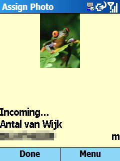 Jammer dat men niet direct vanuit de contactpersonenlijst een foto kan toevoegen, tenzij men de genoemde speciale software daarvoor start. Vanaf Windows Mobile 5 zal deze feature beter geïntegreerd zijn, en is ook het synchroniseren van contactpersonen met foto mogelijk.