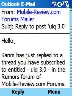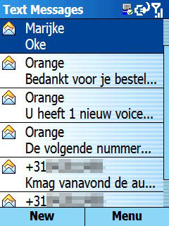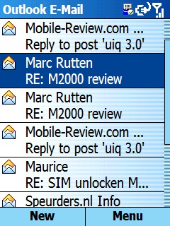 Alle messagingfuncties zijn terug te vinden onder ‘Berichten', wat een betere benaming is dan ‘Inbox' die eerst werd gebruikt. Men ontvangt hier immers niet alleen MMS, e-mail en SMS berichten maar deze hier ook verstuurd en bewaard, voor als het bericht bijvoorbeeld wat later vestuurd moet worden. Zoals in Microsoft Outlook het geval is hier een mappenindeling aanwezig met 'Inbox', 'Verzonden' en ‘Verzonden Items'. Het werken met SMS, e-mail en MMS leverde overigens geen problemen op en de aanwezige MMS-editor steekt logisch in elkaar. Een handigheid hieraan is onder andere een teller voor de grootte van het bericht in kilobytes. Dit is vooral handig omdat iedere netwerkaanbieder een maximumlimiet hanteert hoe groot de MMS mag zijn.