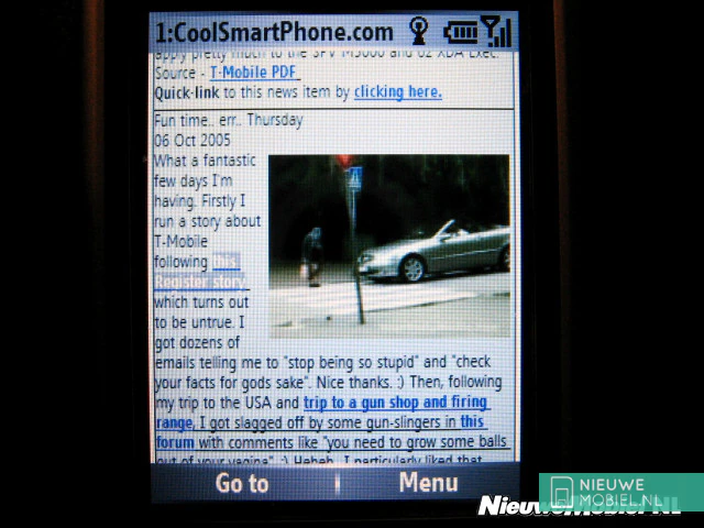 - Minpunten: Windows Mobile 5 overtuigt niet, camerakwaliteit, lage videoresolutie (opname), Geen Office support, backwards compatibiliteit met oudere software, belkwaliteit, hoeveelheid verkrijgbare software op het moment