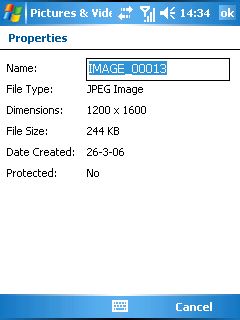 Nadat de foto's gemaakt zijn kunnen deze geopend worden in het foto album genaamd "Afbeeldingen en Video's". De afbeeldingen kunnen hier worden bekeken op het volledige scherm of via een diavoorstelling. De bestanden kunnen worden verzonden via Bluetooth, infrarood, E-mail of MMS-bericht. Aanpassen van de afbeelding is ook mogelijk, maar is eigenlijk vrij karig. De afbeelding kan worden bijgesneden of gedraaid en een autocorrectie kan worden toegepast.