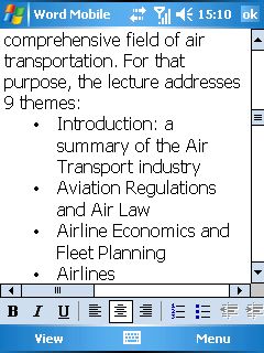 Word Mobile is sinds de vorige versies van Windows Mobile een stuk verbeterd. Zo hoeven Word-documenten niet meer eerst geconverteerd te worden naar Pocket Word formaat maar kan gewoon direct met het standaard Word formaat gewerkt worden. Tevens is de ondersteuning in Word Mobile voor de opmaak van documenten sterk verbeterd. Bij vorige versies van Pocket Word kwam het nog wel eens voor dat de originele lay-out van het document compleet door de war werd gegooid door het document te bewerken in Pocket Word. In de nieuwe versie van Pocket Word, Word Mobile genaamd, is dit probleem geheel opgelost. Het probleem was tevens te wijten aan het feit dat de documenten eerst geconverteerd moesten worden van Word-formaat naar Pocket Word-formaat en weer terug. Met het verdwijnen van deze conversie zijn tevens de opmaak problemen verleden tijd. Documenten zien er nu op de PC precies hetzelfde uit als op de PocketPC, ook nadat ze mobiel aangepast zijn in Word Mobile.