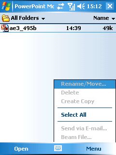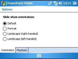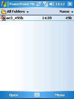 Een nieuwkomer in PocketPC-land is Powerpoint. Microsoft heeft er slim aan gedaan een pocketversie van dit uiterst populaire presentatieprogramma te implementeren in Windows Mobile 5.0 in de vorm van PowerPoint Mobile. Immers, toen PowerPoint er nog niet was voor de PocketPC kwamen veel third-party ontwikkelaars met oplossingen (denk aan Clearvue). Powerpoint Mobile werkt grotendeels hetzelfde als z'n grote broertje, al is er één groot verschil: bij PowerPoint Mobile kunnen geen presentaties gewijzigd of aangepast worden, enkel bekijken is een optie. Een begrijpelijke keuze van Microsoft: de mogelijkheden om een PowerPoint presentatie te maken zijn immers legio en het programma zou veel te veel geheugen en resources eisen van de toch beperktere PocketPC. Bovendien is een PocketPC niet het ideale platform om PowerPoint presentaties te maken. Maar waarom kan het dan wel op de Nokia E-series? Hebben deze modellen wel genoeg geheugen en resources?