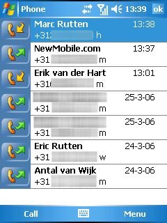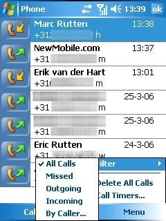 Net als de voorgaande Windows Mobile versies is er ook bij Windows Mobile 5.0 een heel uitgebreid gespreksoverzicht op te vragen van inkomende, uitgaande en gemiste oproepen. Per oproep kan er uiteraard de datum, tijd en duur worden weergegeven. Ook kan een samenvatting opgevraagd worden van alle gesprekken (inkomende, uitgaande, laatste, gesprekken op een ander netwerk) genaamd timers. Deze functie bevat geen grote veranderingen ten opzichte van de oudere Windows Mobile versies, maar men heeft wel directe ondersteuning voor Caller ID-afbeeldingen toegevoegd. Meer hierover is te lezen in het onderdeel 'telefoonboek' van deze review.
