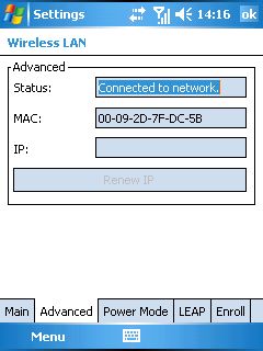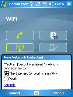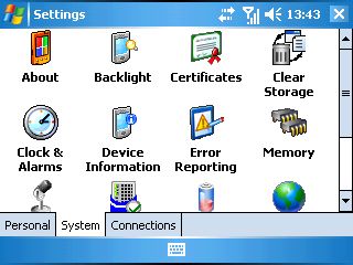 De derde connectivity mogelijkheid is de GSM/GPRS-dataverbinding. Deze kan via het tabblad 'Instellingen' ingesteld worden. Voor de rest maakt de GPRS-mogelijkheid gewoon gebruik van de standaard verbindingen zoals Windows Mobile deze ingesteld heeft en waren er vrij weinig problemen op het gebied van verbindingssnelheid en stabiliteit.