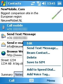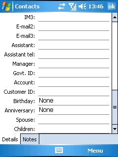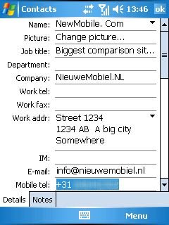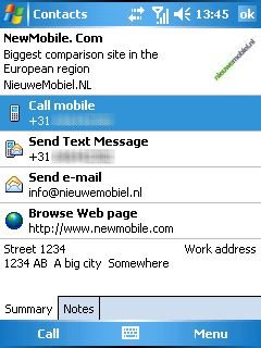 De opties die per contactpersoon op te slaan zijn, zijn zoals men van Windows Mobile gewend is, erg uitgebreid. Het varieert hier van Voor- of achternaam tot werkadres en van apart in te stellen beltonen tot telefoonnummers van assistenten van de betreffende contactpersoon. Een nieuwe optie die deze toch al erg uitgebreide lijst helemaal compleet maakt, is om CallerID afbeeldingen in te stellen per contactpersoon. Deze optie was weliswaar ook aanwezig in eerdere PocketPC-phones maar hier werd dat geregeld door aparte programma's. Met de komst van Windows Mobile 5.0 is deze optie eindelijk geïntegreerd in de contactpersonenapplicatie. Een slimme zet van Microsoft aangezien deze optie al wel degelijk in de nieuwste versies van Microsoft Outlook te vinden was en nu dus zonder problemen gesynchroniseerd kan worden.