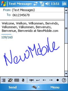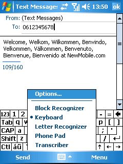 Het zogenaamde 'phonepad' is de vierde optie en hierbij verschijnt een telefoontoetsen lay-out op het scherm zodat met één hand eenvoudig tekst ingevoerd kan worden net als op een normale telefoon met toetsenbord. Tot nu toe was er echter nog geen ondersteuning voor T9 (alleen Engels) maar met de komst van Windows Mobile in het Nederlands, is ook T9-ondersteuning voor de Nederlandse taal meegekomen. Dankzij deze feature is het nu nog makkelijker om zonder keyboard even one-handed een SMS-bericht te typen. De laatste optie is de transcriber, dat niet meer dan de handschriftherkenning is. Door op het scherm tekst te schrijven zal deze worden toegevoegd in het bericht. Helaas, is dit systeem niet zo snel en accuraat als systemen bekend uit de Sony Ericsson P990i/M600i of Nokia 7710.