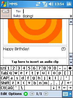 Bij het opmaken van een SMS-bericht is tevens te zien hoeveel karakters nog ingevoerd kunnen worden (standaard zijn dit er 160 bij SMS). Een vergelijkbare optie is ingebouwd in de MMS functie. Als hier de grens van 100 KB overschreden wordt, wordt dit netjes gemeld en gevraagd of het wat minder kan. Bij het opmaken van een MMS-bericht kan ook nog gekozen worden om het bericht op een later tijdstip te laten versturen. Er is hier ook een optie om direct naar de camera over te schakelen om zo een foto of video te schieten en dan direct te versturen.