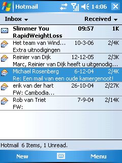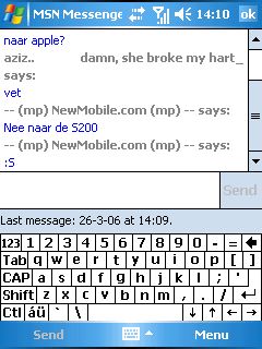 Tenslotte is daar nog de Instant messaging mogelijkheid door middel van MSN. Microsoft heeft in de nieuwe versie van PocketMSN tevens een feature voor het gebruik van Hotmail ingebouwd. Hierdoor kan er snel en eenvoudig gebruik gemaakt worden van het bijbehorende Hotmail account waarmee ingelogd wordt op MSN. Het chatten via de messenger is overigens ook erg prettig op de Qtek S200, wel is enige vertraging op te merken als meerdere chatvensters geopend zijn, wat toch enigszins vreemd te noemen is aangezien het toestel andere applicaties probleemloos naast elkaar kan draaien zonder vervelende vertragingen. Afgezien van dit kleine minpuntje is het messaging gedeelte op de S200 wel in orde, mede dankzij de aanwezigheid van het nieuwe push mail.