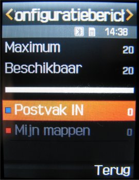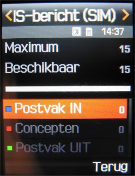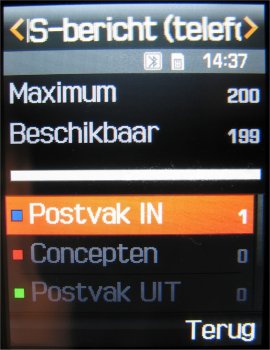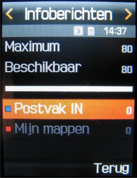 Op het toestel kan de gebruiker maximaal 200 SMS berichten, 80 infoberichten, 50 serverberichten en 20 configuratieberichten opslaan. De KG800 kan maximaal 150 SMS berichten opslaan. De hoeveelheid opslag voor MMS en Email berichten hangt af van de hoeveelheid aanwezige geheugen in het toestel zelf en bedraagt voor beide systemen maximaal 3 MB.