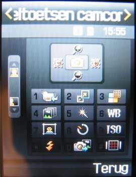 Via de sneltoetsen op het toetsenbord en de zijkant van het toestel kan men een groot deel van de instellingen en opties die hierboven genoemd zijn instellen. Tevens kan men een keuze maken uit of de fotocamera op het volledige scherm moet worden weergegeven. Een optie die ook in het menu ingesteld kan worden.