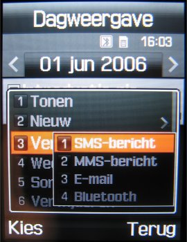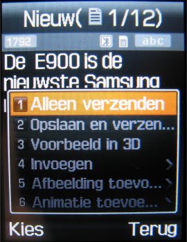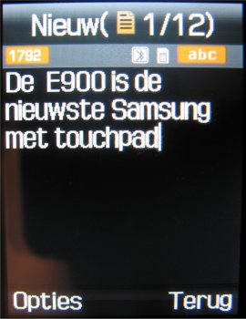 Samsung laat dit nog niet zien en ook niet in deze E900. Het toestel behoort ook tot de groep toestellen met de mogelijkheid om groep SMS berichten te versturen en dat is al een enorme verbetering ten opzichte van vroegere toestellen. Verder zijn wel alle functies aan boord die men mag verwachten; SMS, MMS, EMS en nu ook Email via POP3 en SMTP, naast Email via SMS dat al lang in Samsung toestellen aanwezig is.