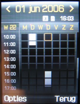 In relatie tot de aanwezige programma’s en de E900 kan gezegd worden dat eigenlijk niks gemist wordt. Alle programma’s die men op een dergelijk toestel mag verwachten zijn aanwezig. De programma’s zijn over een aantal plekken verdeeld in het menu. Het eerste onderdeel is kalender waar men een complete kalender vindt met de mogelijkheid tot het toevoegen van een afspraak, verjaardag of een actiepunt. Tevens kan men de agenda opvragen in maand, week en dag overzicht en memo’s opslaan. In totaal kan men in de kalender 300 punten en 100 notities opslaan.